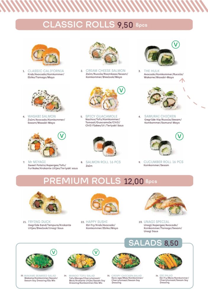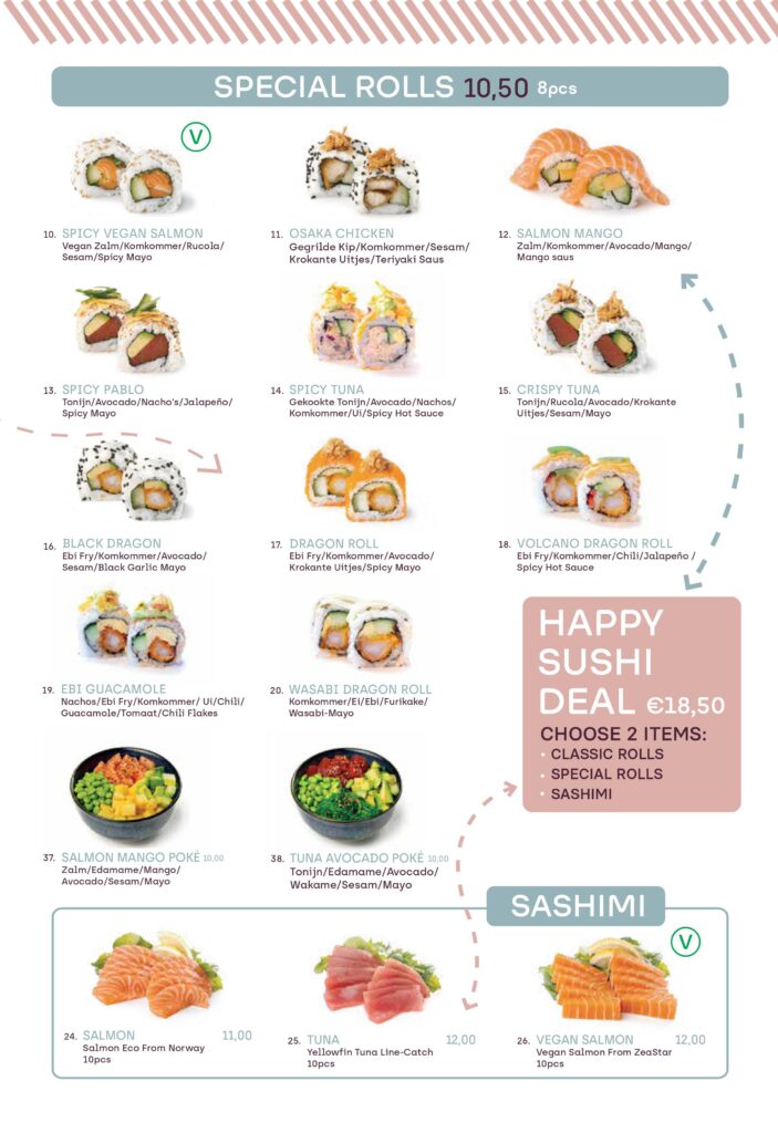 Maak een keuze waar je blij van wordt! Onze chefs bereiden je favoriete gerechten met uitsluitend de beste ingrediënten. Zo geven we jou het beste sushi-moment. Wat is jouw favoriete gerecht op het menu?